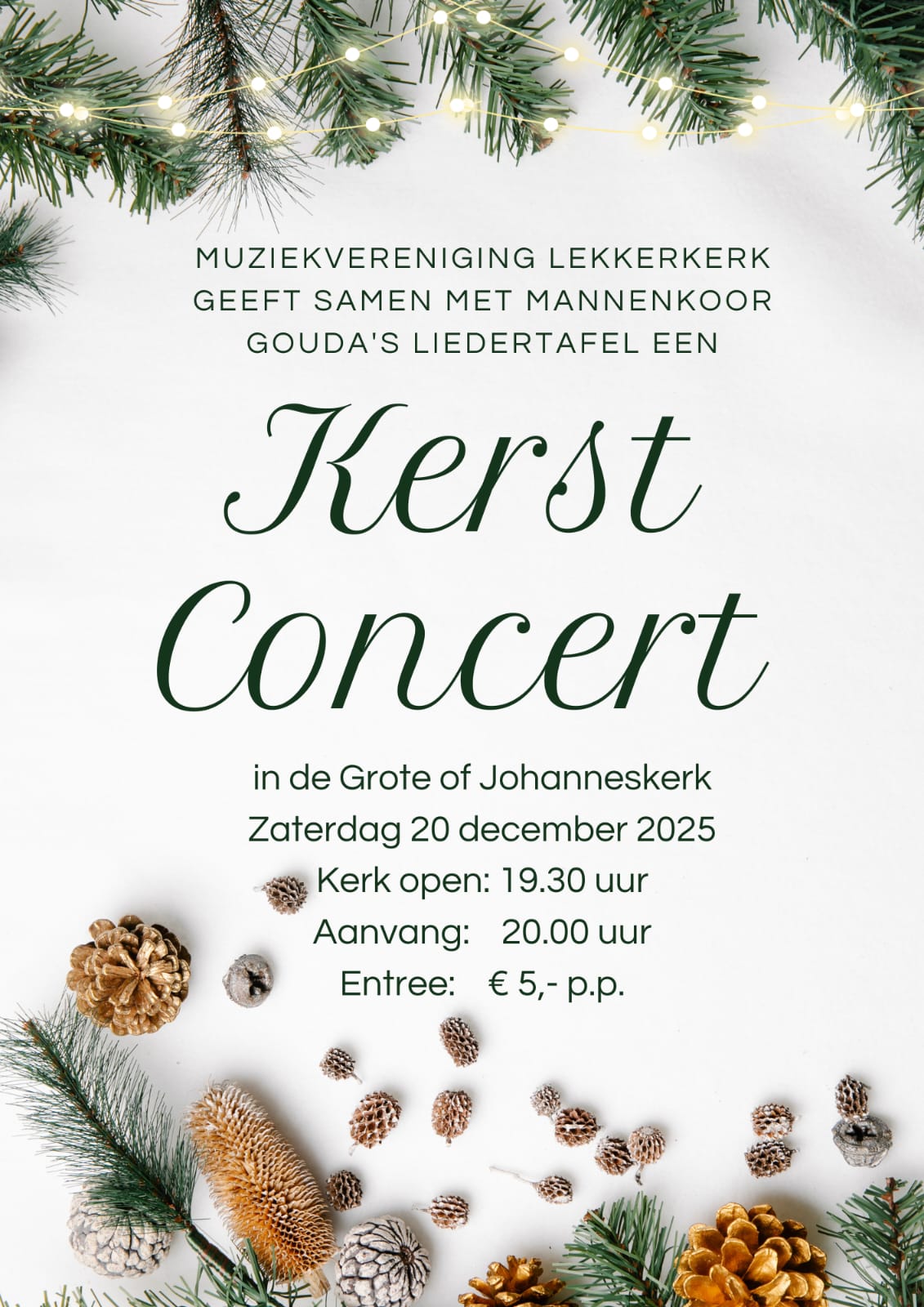 Mannenkoor Gouda’s Liedertafel is dit jaar voor een groot kerstconcert als gast uitgenodigd door Muziekvereniging Lekkerkerk. Samen met het orkest onder leiding van Marko van Esch zullen wij afwisselend oude en nieuwe kerstmuziek ten gehore brengen.
